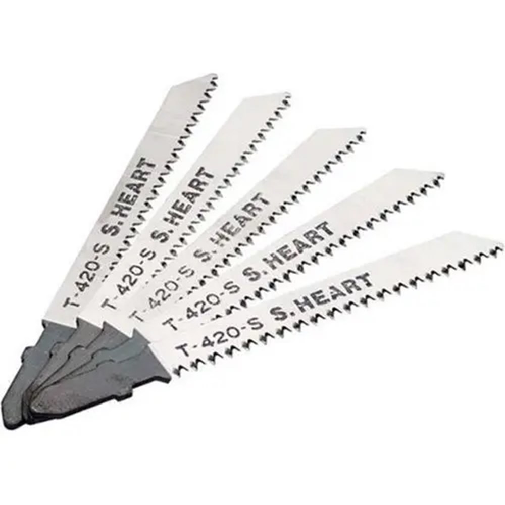 De S420S T-schacht decoupeerzaagbladen (set van 5) zijn bi-metaal zaagbladen van High Speed Steel met kruisgeslepen/conische vertanding. Ze leveren nette zaagsneden en zijn ideaal voor rechtuit zagen. Met deze set kunt u splintervrij zagen in hard- en zachthout, gelamineerd spaan- en vezelplaat, kunststoffen, aluminium, laminaat en zelfs Trespa®.