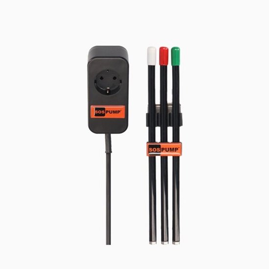 Compacte niveauschakelaar voor het automatisch schakelen van dompelpompen in kleine ruimtes. Werkt vanaf 1 mm waterhoogte met drie staafjes voor nauwkeurige controle: wit = laagste punt, groen = startniveau, rood = stopniveau. Ideaal voor kelders, leidingen en smalle putten.