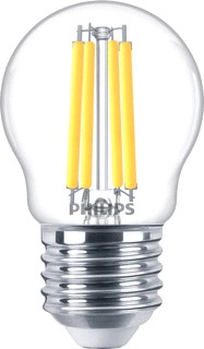 Philips MASTERValue LED kogellamp led-lamp, wit, lengte 78mm, diameter 45mm, temperatuur 2700K, voet E27, dimbaar, 3.4W, lichtstroom 470lm, lampvorm peer, nom. spanning 220 - 240V, uitvoering glas/afdekking helder, filament lamp, spanningstype AC, beschermingsgraad (IP) IP65,
