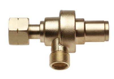Drukregelaar voor 0,425 kg karweiflessen met een vaste werkdruk van 1,5 bar. Fijne sintermetaalfilters (zie afb.) beschermen de soldeerbranders tegen vlokvorming. Vermogen 1,5 kg/h, ingang 3/8“ Links, uitgang 3/8“ Links.