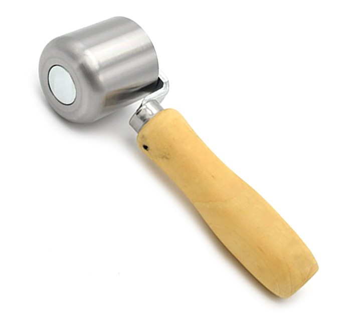 Stalen naadrol met afgeronde rand van 50 mm Afmetingen: 50 mm x F 50 mm Standaard enkele stalen vork Stalen rol met afgeronde buitenrand Geïnstalleerde hoogwaardige kogellagers Comfortabele, gelakte houten handgreep