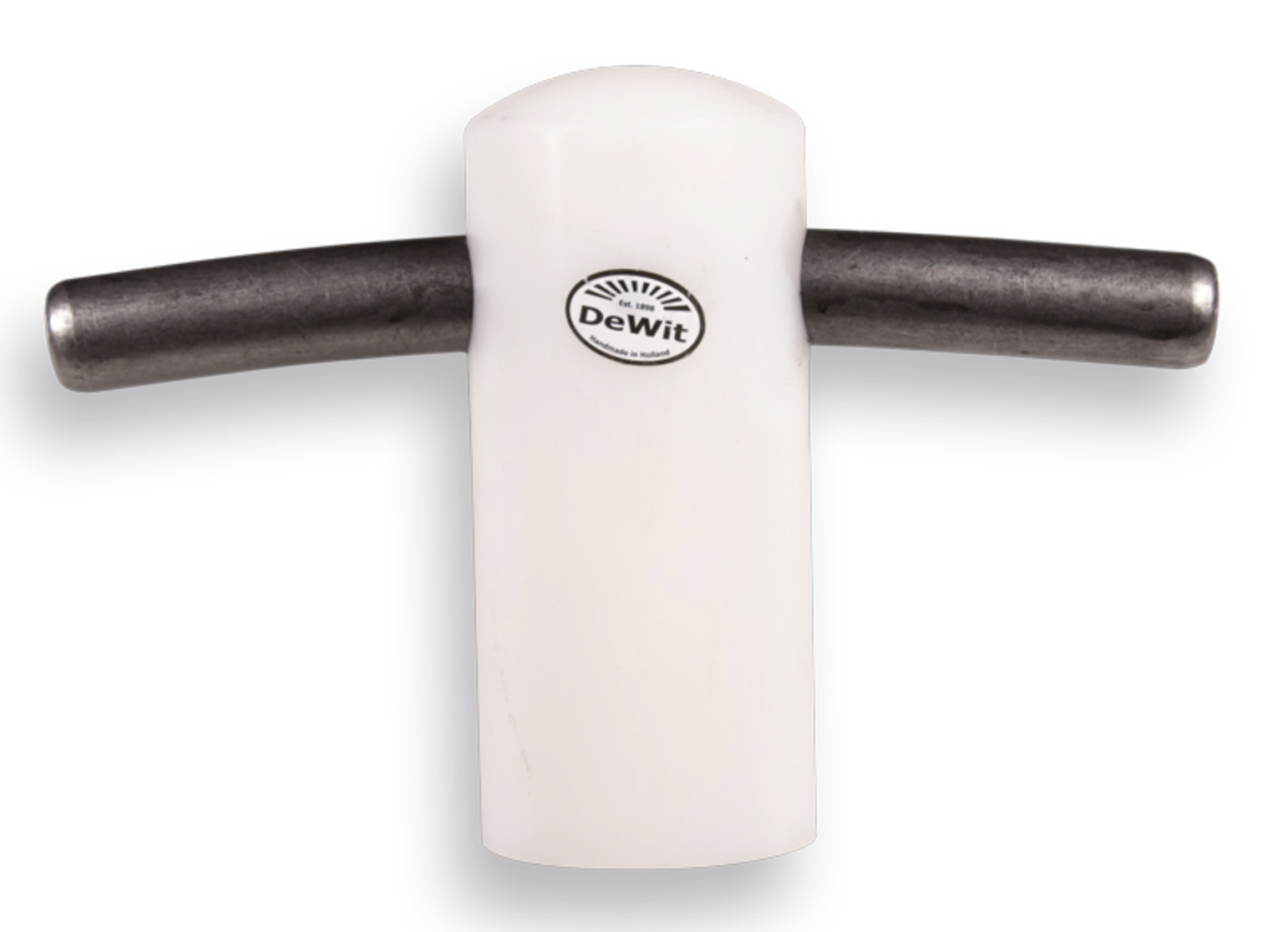 Tegelklopper De Wit met nylon klos van 3000 gram en gebogen metalen handvat. Duurzaam, stevig bevestigd en veelgebruikt voor tegelwerk.