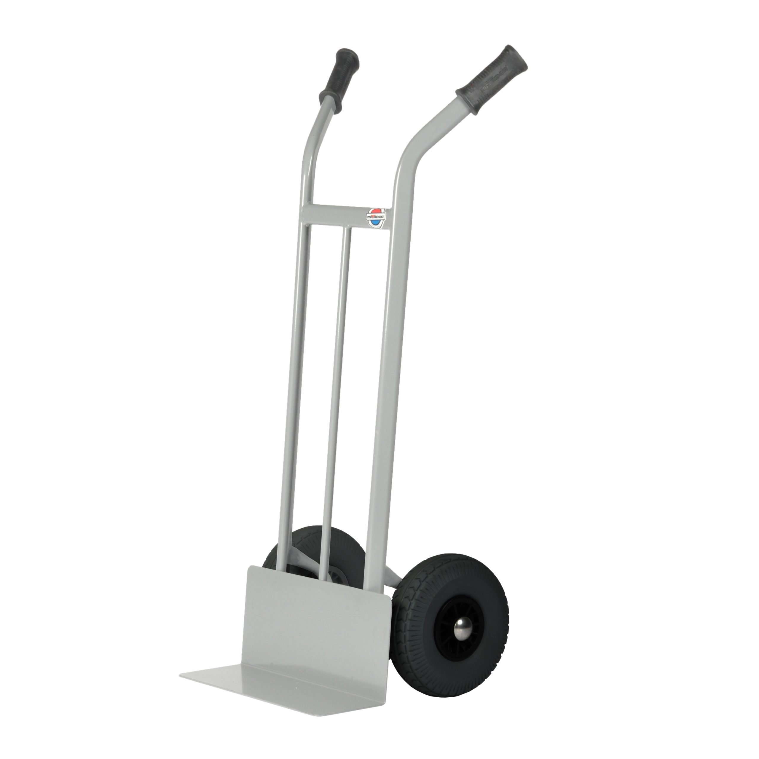 Steekwagen met vaste steek met een capaciteit van 200 kg, rubberen handgrepen, luchtbanden 260 x 85 mm Gewicht: 10 kg. Draagvermogen: 200 Kg. Afmetingen: (BxDxH) 425x430x1191mm Afmetingen pastei: (BxD) 425×148