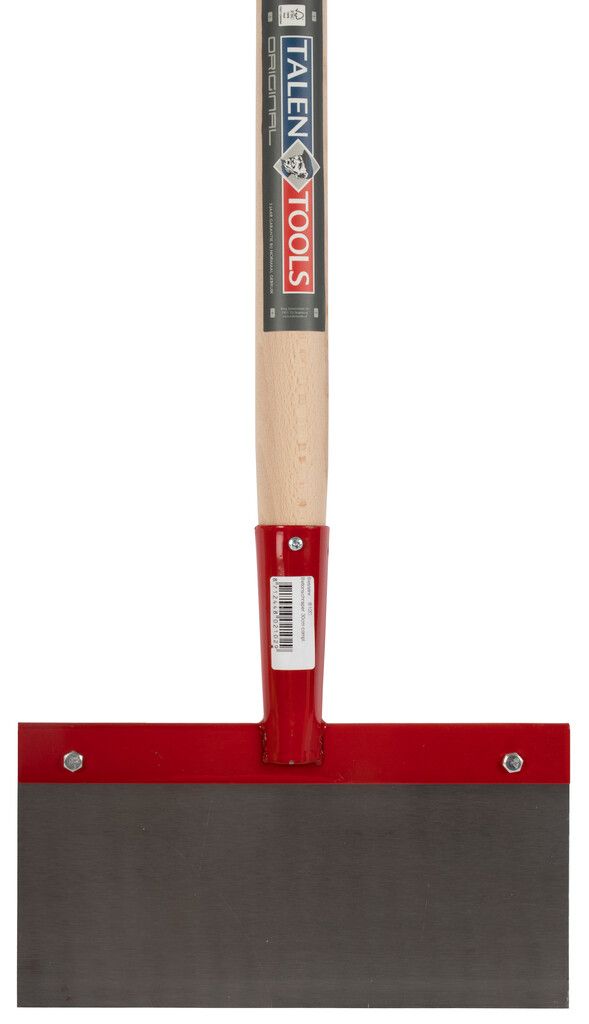 Robuuste schraper van Talen Tools voor hardnekkig vuil op beton, stalvloeren of terrassen. Het 30 cm brede blad van gehard staal schraapt eenvoudig zware resten weg. Dankzij de diepe dul en 38 mm dikke essenhouten steel van 130 cm is de schraper extra stevig en comfortabel in gebruik. FSC-gecertificeerd hout met waxlaag beschermt tegen vocht en vuil.