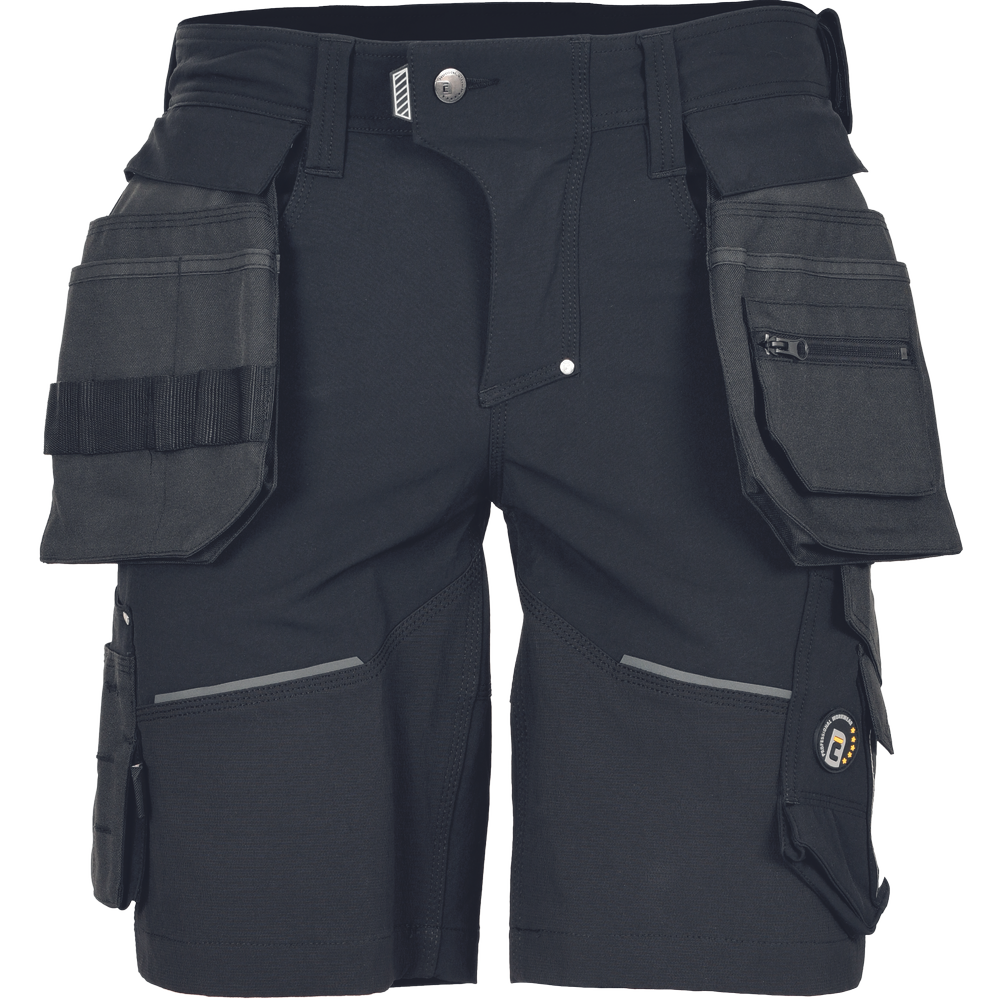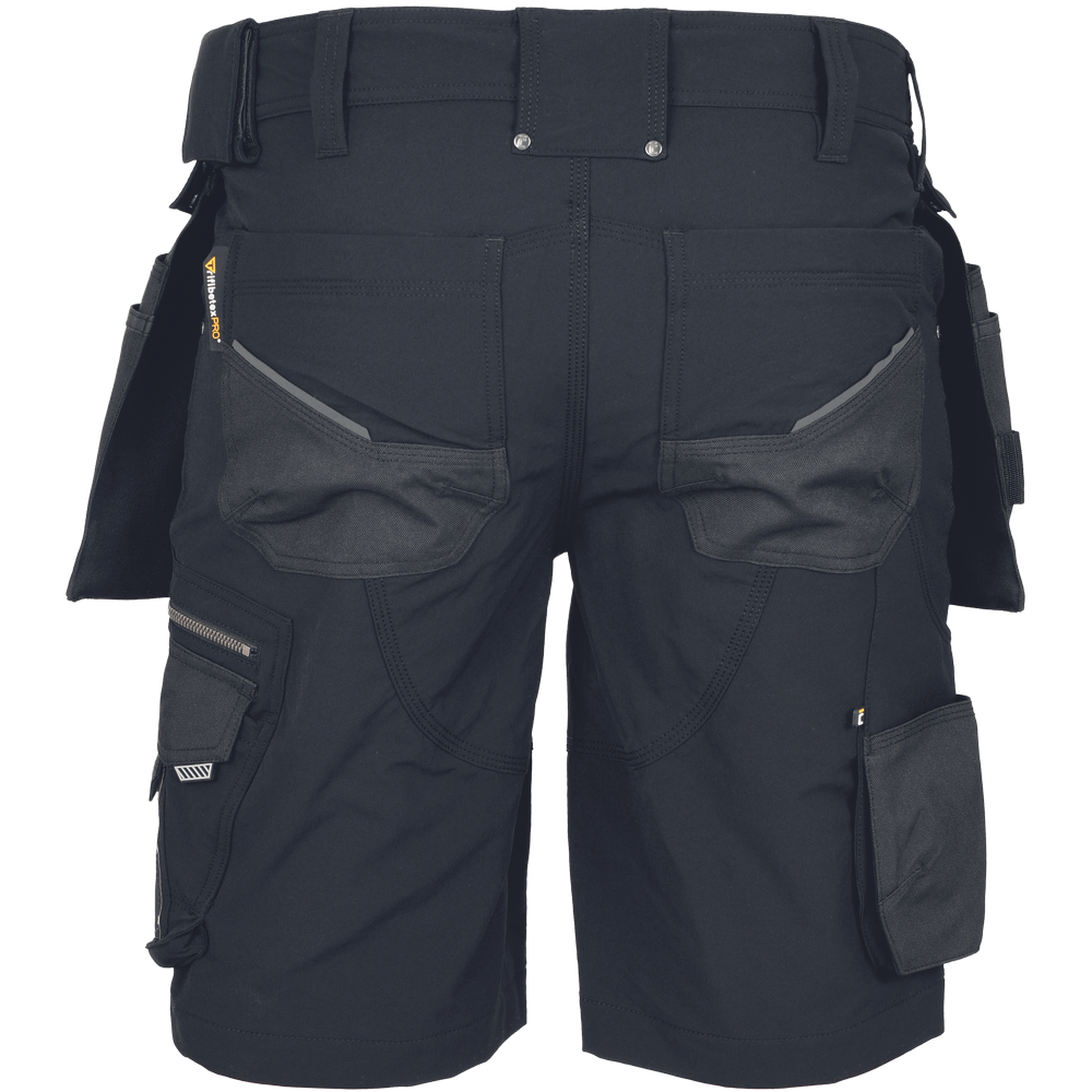 • herenwerkshort gemaakt van uniek vierweg-stretchmateriaal Trifibetex-PRO®, aangevuld met 2 zwenkbare multifunctionele afneembare zijzakken