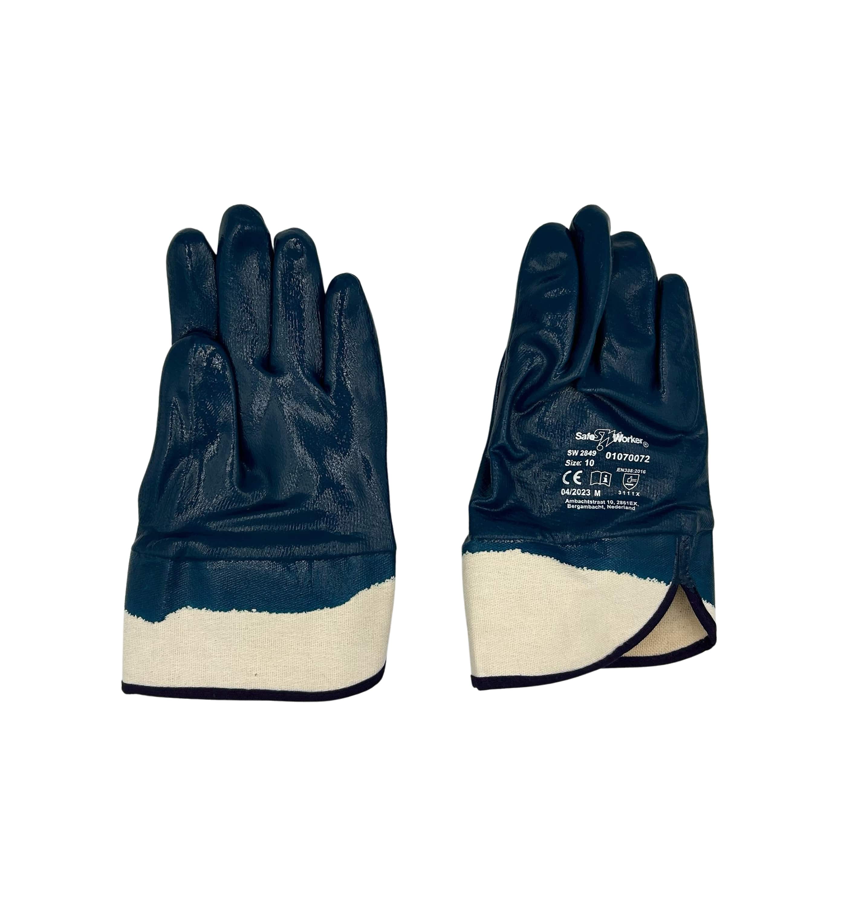 Werkhandschoen 9031B, A-kwaliteit, katoen met 3/4 nitril coating, ideaal voor bescherming bij zwaar werk in droge en olieachtige omgevingen.