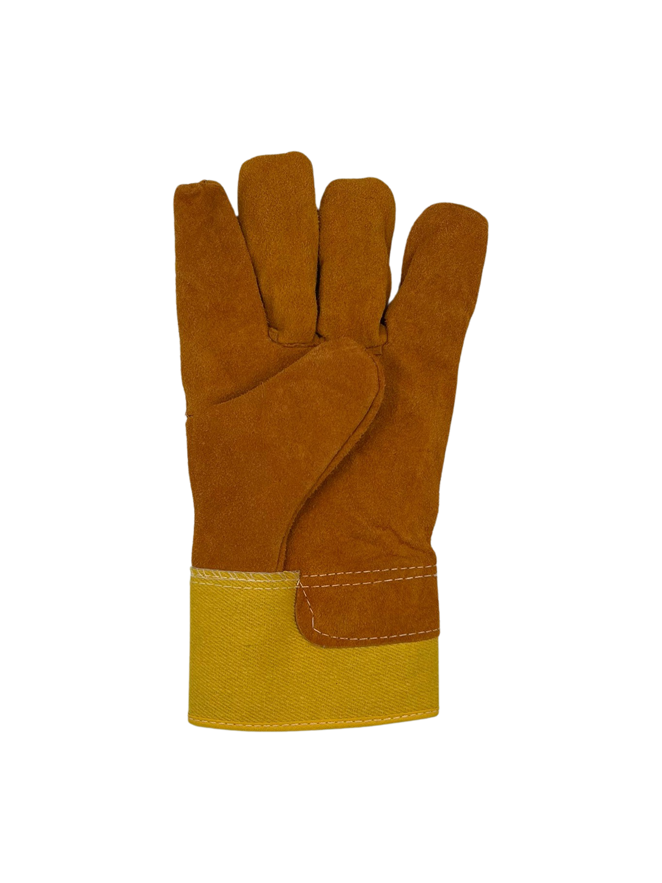 Een foam gevoerde splitlederen alleen linker handschoen met katoenen doek en 7 cm gerubberiseerde kap. Ideaal voor koude omgevingen.