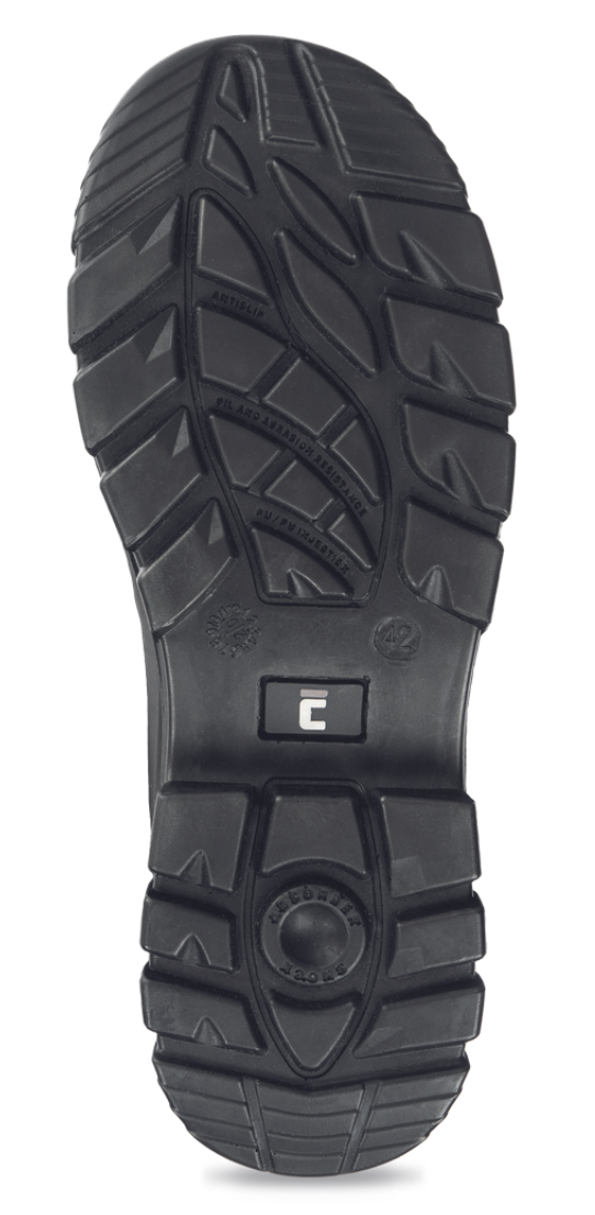Enkellaars met een stalen neus en een antiperforatie tussenzool. Buitenzool: PU/PU (dubbele dichtheid) en massieve overneus. De SRC- buitenzool is oliebestendig. Bovenmateriaal gemaakt van waterbestendig leer.
